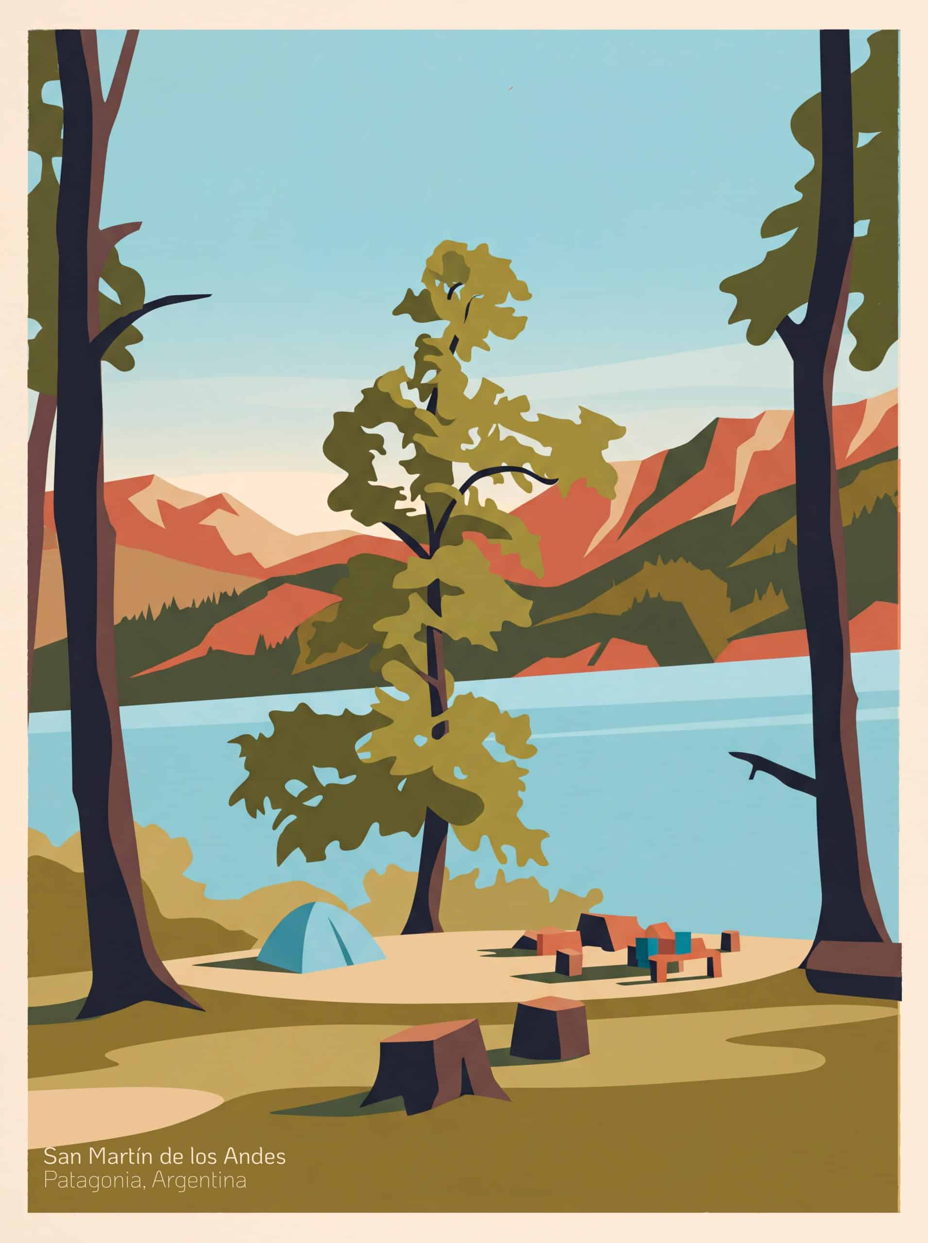 Camping de La Islita, al borde del Lago Lácar. San Martín de los Andes.